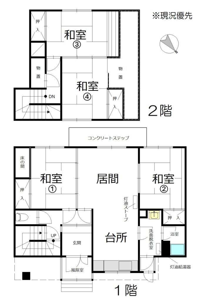 コンクリートブロック・木造 2階建て